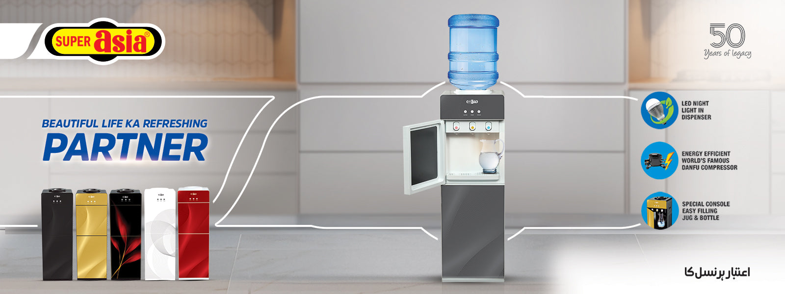 Buy online Super Asia HC-54G Water Dispenser in Pakistan, Double safety device for preventing overheating and Stainless-steel food grade water tanks.